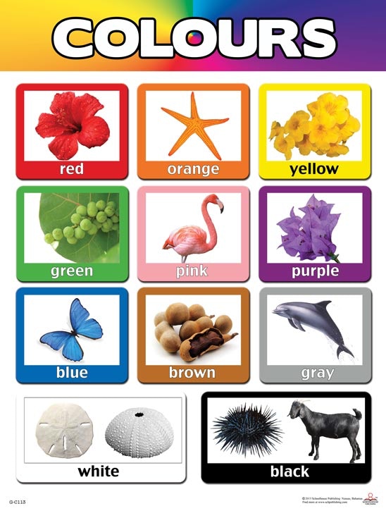 This bright chart helps students learn to identify colours by using items found in the Bahamas.