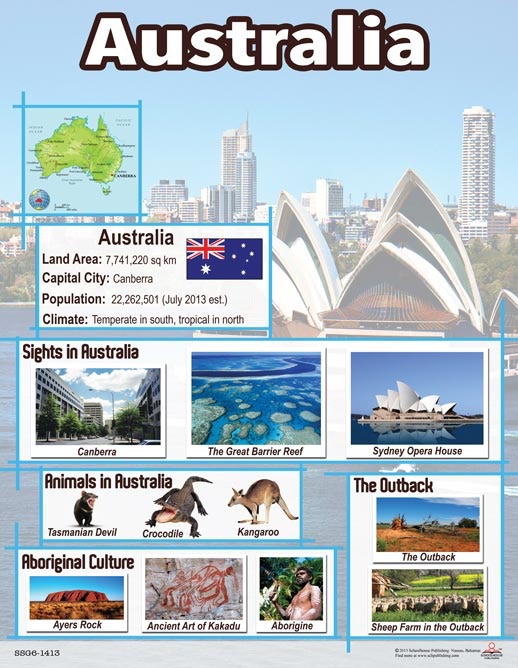 A chart that gives students a view of life in Australia. It is designed to complement the Upper Primary Bahamian Social Studies Curriculum.