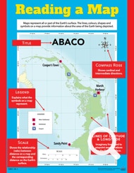 This chart shows the different parts of a map and explains how to read a map.